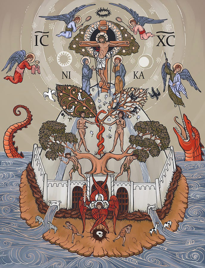 Trees are also the basis for the Christian story as well. Remember, there were two trees in the Garden of Eden, the Tree of Knowledge of Good and Evil and the Tree of Life. According to St. Ephrem the Syrian in his “Hymns on Paradise,” the Tree of Knowledge barred Adam and Eve from accessing the summit of Paradise (because Eden was on a mountain) where the Tree of Life was planted. The Tree of Knowledge acted as a sanctuary veil, typologically related to the sanctuary veil in Catholic churches were the Eucharist is kept hidden from the uninitiated.